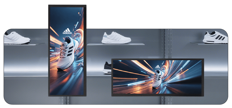 Featuring a 16:6 aspect ratio wide screen, offers new forms of advertising in small, narrow spaces.